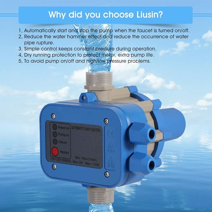 - Automatic Start/Stop: Activates the pump when water levels fall below a set point and shuts it off when the desired level is reached.